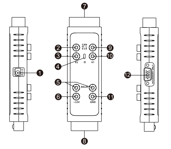 K1 Port - Universal K-Line interface, connects with OBDII Pin1